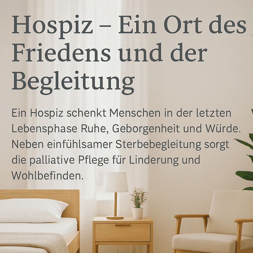 Das Hospiz als gewählter Sterbeort lässt den Menschen in der letzten Phase seines lebens zu Ruhe kommen und verschafft ihm die Möglichkeit Frieden zu finden. Natürlich wird neben der Begleitung in den Tod auch palliativ medizinische Therapien angewandt und die sehr gut ausgebildeten Palliativ Pfleger gehen alle erdenklichen Wege um den Patienten zu helfen, in den wenigsten Fällen stabilisieren sich die Erkrankten jedoch wieder.