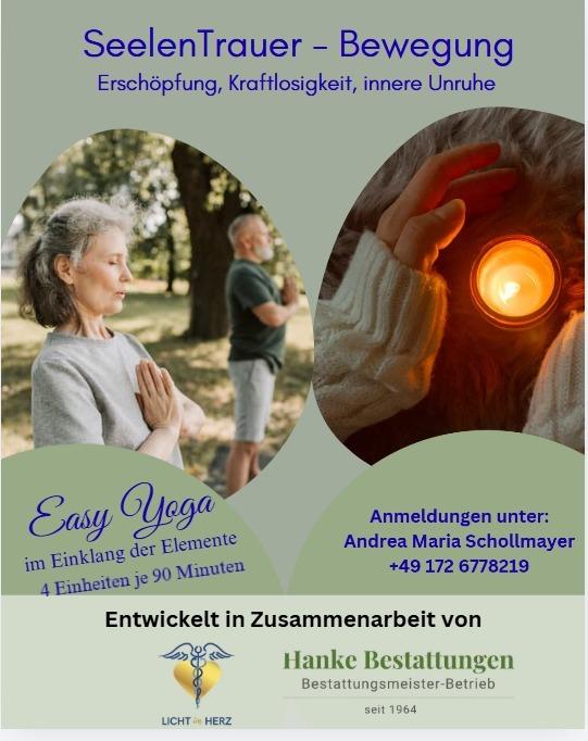 Der Kurs wurde in Zusammenarbeit von Licht im Herz und Hanke Bestattungen entwickelt, um Menschen in Zeiten der Trauer einen besonderen Raum für Bewegung, Wahrnehmung und innere Stärkung zu bieten.