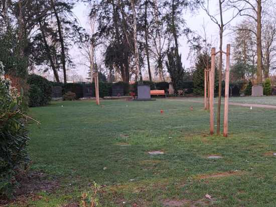 Der Friedhof in Hattersheim verfügt über mehrere Bestattungsbäume, die Beliebtheit dieser Grabart ist hoch so das nun neben dem Baumfeld auf welchem sechs unterschiedliche Bäume gepflanzt sind weitere Bume ihren Platz auf dem Friedhof in Hattersheim gefunden haben.