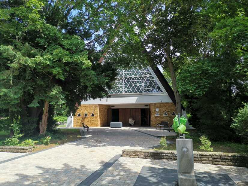 Für Trauerfeiern steht auf dem Friedhof eine Trauerhalle zur Verfügung. Zusätzlich kann ein Abschiedsraum genutzt werden, der Raum für einen persönlichen und stillen Abschied bietet.