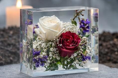 Blumen aus der Trauerfeier tragen eine besondere Symbolik. Durch die schonende Konservierung in hochwertigem Epoxidharz bleiben sie dauerhaft erhalten und werden zu einem einzigartigen Erinnerungsstück für Ihr Zuhause.