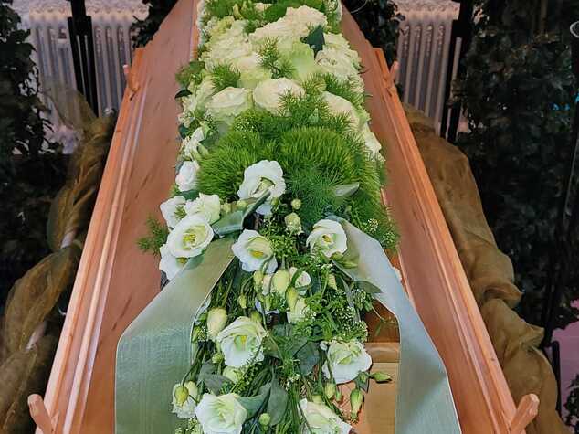 Eine Sargauflage aus Blumen ist ein besonders persönlicher Ausdruck von Liebe, Erinnerung und Abschied. Sie schmückt den Sarg während der Trauerfeier und verleiht dem letzten Weg eines geliebten Menschen eine würdevolle, ruhige Atmosphäre. Mit frischen Blumen, harmonischen Farben und sorgfältig gestalteter Trauerfloristik wird jede Sargauflage individuell auf das Leben, die Persönlichkeit und die Wünsche des Verstorbenen abgestimmt.