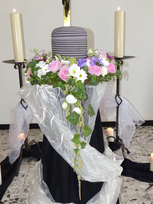 Wir übernehmen auf Ihren Wunsch hin diesen Service und bestellen und organisieren Ihrer Wunschblumen. Eine passende Dekoration für die Kapelle oder Kirche wird immer auf die Wünsche zugeschnitten.